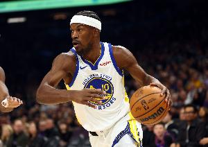 比賽第三節(jié),勇士球星吉米·巴特勒右膝受傷,被隊(duì)友架著回到更衣室,隨后退出了本場(chǎng)比賽。