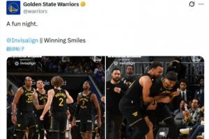 勇士官推隨后曬出該場比賽的照片,并配文道:“一個有趣的夜晚。@invisalign,勝利的微笑。”