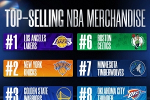 體育資訊1月21日訊 NBA官方公布了25-26賽季上半賽季球隊球衣銷量排行,該數(shù)據(jù)均基于NBAStore的銷售數(shù)據(jù)。