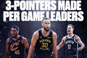 場均三分榜單,庫里唯一4+,場均4.5個領(lǐng)跑全聯(lián)盟!