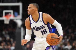 國王球員威少上半場依舊打得十分積極,在遠(yuǎn)投手感不佳的情況下,多次嘗試沖擊內(nèi)線拿分。