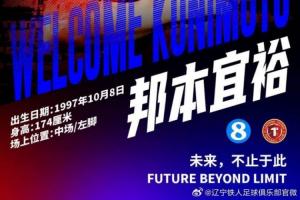 即日起,本賽季,邦本宜裕先生將繼續(xù)為遼寧鐵人足球隊馳騁疆場!