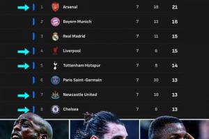 歐冠聯(lián)賽階段還剩最后一輪,積分榜前8名中英超球隊占據(jù)5席!掌握直通淘汰賽主動權(quán)????????????????