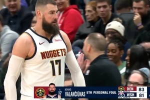 GIF-瓦蘭丘納斯跳球摟人被吹犯規(guī),個(gè)人第5犯被換下