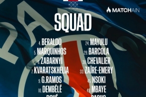 前鋒:7-克瓦拉茨赫利亞、 9-貢薩洛·拉莫斯、10-登貝萊、14-杜埃、29-巴爾科拉、49-姆巴耶
