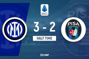 上半場(chǎng)補(bǔ)時(shí)4分鐘。半場(chǎng)戰(zhàn)罷,國(guó)米3-2比薩。