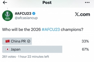 亞足聯(lián)官推發(fā)起了對(duì)最終奪冠球隊(duì)預(yù)測(cè)的投票,其中33%的球迷支持U23國(guó)足奪冠,67%的球迷更看好日本U23奪冠。