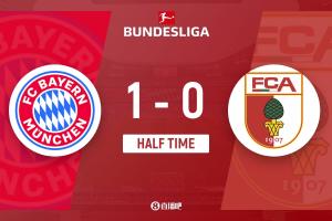 半場結(jié)束,拜仁1-0奧格斯堡。
