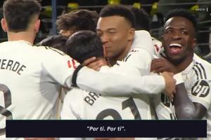 據(jù)轉(zhuǎn)播方Movistar的鏡頭記錄,姆巴佩在打進(jìn)這粒勺子點球后專門擁抱并親吻了隊友布拉欣·迪亞斯,并向后者說:“(進(jìn)球是)為了你,為了你?!?/p>
