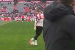 在比賽開(kāi)始前的熱身環(huán)節(jié),諾伊爾在接長(zhǎng)傳球時(shí)展示了花式停球,將球穩(wěn)穩(wěn)停在地上,一旁正在直播的記者難以置信驚嘆連連。