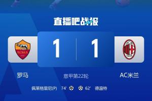 體育資訊01月26日訊 剛結(jié)束的意甲,羅馬1-1戰(zhàn)平米蘭,本賽季首次戰(zhàn)平。