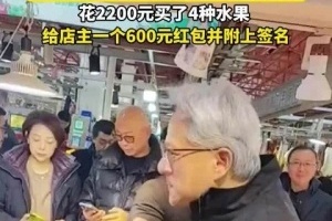 近日,英偉達(dá)CEO黃仁勛現(xiàn)身上海陸家嘴街道乳山路錦德菜市場。水果店老板劉先生稱,黃仁勛很低調(diào),很有親和力,很愿意和大家合影?!拔蚁霂兔ο匆幌滤蛔屛蚁?,自己拿起來就吃?!眲⑾壬f,黃仁勛在他的店里買了2200元的水果,給一個600元的紅包,還附上簽名。