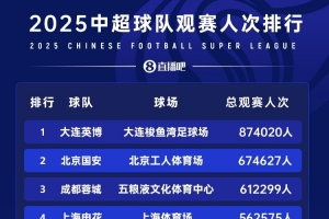 根據(jù)中足聯(lián)的數(shù)據(jù),2025年,中超、中甲和中乙三級職業(yè)聯(lián)賽票房總收入達到了6.4億元人民幣,增幅高達38.12%,其中中超聯(lián)賽16家俱樂部票房總收入達到了5.81億元。據(jù)《足球》報報道,有2家俱樂部票房收入超過了1億元人民幣。