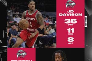 此役,火箭雙向合同球員JD·戴維森出場38分鐘24投13中,三分5中1、罰球6中5,砍下35分11籃板8助攻3搶斷3蓋帽。