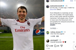 范博梅爾寫道:“15年前的今天,我完成了在AC米蘭的首秀?!?/p>