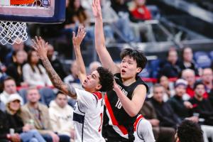 GIF-楊瀚森跟朱哥擋拆配合!楊瀚森勾手兩分!