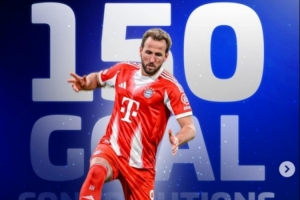 本場(chǎng)比賽凱恩破門(mén),這也是他拜仁生涯各項(xiàng)賽事為球隊(duì)直接參與的第150粒進(jìn)球,用時(shí)127場(chǎng)比賽(120球30助)。
