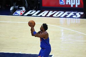 尼克斯球員阿努諾比上半場是球隊(duì)表現(xiàn)最不錯(cuò)的球員,他多次切入內(nèi)線完成扣籃,防守也很給力,還有協(xié)防大帽英格拉姆的精彩表現(xiàn)。