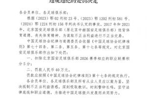 足協(xié)公布處罰公告,北京國安被扣5分+罰款人民幣40萬元。隨后北京國安官方回應(yīng):“人在做,天在看!頭頂三尺有神明!”