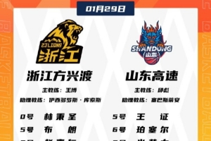 體育資訊1月29日訊 今晚19:35,CBA常規(guī)賽焦點戰(zhàn),廣廈對陣山東。賽前雙方公布了本場比賽的大名單。