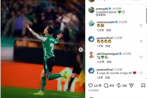 安東尼賽后更新社媒動(dòng)態(tài),曬出慶祝進(jìn)球的照片,配文:“晉級(jí)!”