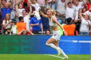 這位英格蘭前鋒與耐克合作已有數(shù)年,她在2022年歐洲杯奪冠后標(biāo)志性的慶祝動(dòng)作,將球衣舉過(guò)頭頂、露出白色耐克運(yùn)動(dòng)內(nèi)衣,成為了該品牌的一個(gè)經(jīng)典形象。