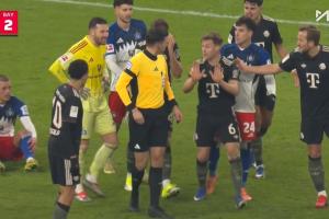 第99分鐘,斯坦尼西奇被武什科維奇推搡撞向另一名漢堡球員,主裁判判罰進攻犯規(guī),引發(fā)拜仁球員更激烈的抗議。