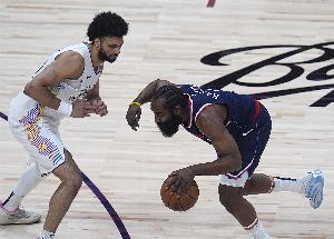 上賽季季后賽首輪快船和掘金搶七的比賽,哈登8投2中,得到7分5板13助攻2失誤,正負值-29。