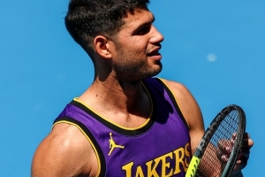 體育資訊1月13日訊 據(jù)昨日?qǐng)?bào)道,西班牙網(wǎng)球名將、現(xiàn)男子單打排名第一的卡洛斯-阿爾卡拉斯在澳大利亞網(wǎng)球公開(kāi)賽的訓(xùn)練中上身了湖人球星詹姆斯的23號(hào)球衣。