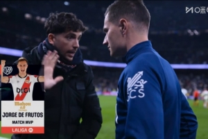 體育資訊2月1日訊 西甲第22輪比賽,巴列卡諾在伯納烏以1-2的比分不敵皇馬。本場比賽,巴列卡諾前鋒德弗魯托斯打進1球,賽后他被評為全場最佳球員。