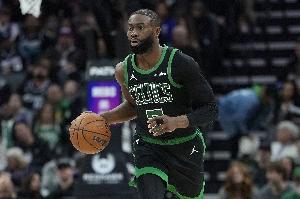 此役凱爾特人球星杰倫·布朗繼續(xù)出色發(fā)揮,打了29分鐘20投12中,三分6中4、罰球3中2砍全場最高30分13籃板外加2助攻1搶斷,也有4失誤,正負值+16。