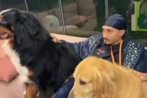 拉菲尼亞社媒曬出與狗狗在一起的視頻,配文:“我的孩子們?!?/p>