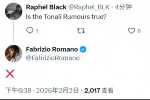 在一則有關阿森納的轉(zhuǎn)會動態(tài)下,一位球迷向羅馬諾提問:“托納利的傳聞是真的嗎?”