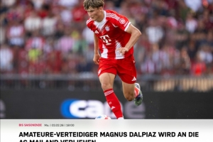 拜仁官方寫道:“天才邊后衛(wèi)達(dá)爾皮亞茲離開(kāi)拜仁慕尼黑,以租借形式加盟意大利傳統(tǒng)豪門AC米蘭,租期至今年夏天。”