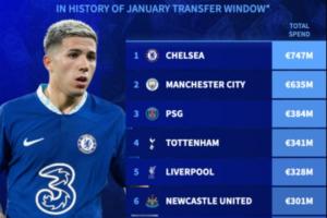 體育資訊02月03日訊 上午6:00,25-26賽季五大聯(lián)賽冬窗陸陸續(xù)續(xù)落下了帷幕。德轉(zhuǎn)統(tǒng)計了各支球隊自從冬窗設(shè)立以來的總支出。