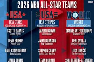 體育資訊02月04日訊 NBA官方公布2025-2026全明星分隊結果!其中詹杜庫再同隊,一眾新星組隊!世界隊9人!