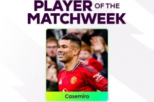 此役卡塞米羅貢獻傳射,幫助曼聯取勝,英超官方宣布,卡塞米羅當選第24輪最佳球員。