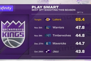 國(guó)王賽季三分命中率前五場(chǎng)次: