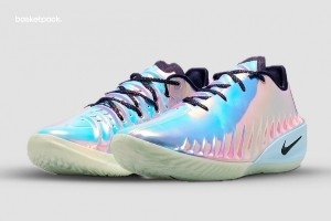 這雙Nike G.T. Cut 4和此前曝光的幾位球星簽名鞋一樣都是屬于Warning Label系列,鞋面都采用了亮面金屬質感材質。而作為文班亞馬的PE,鞋后跟有代表文班亞馬的外星人頭像Logo。鞋帶位置則有一個外星人造型的配飾。