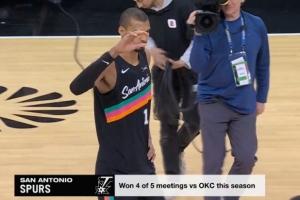 本賽季,馬刺面對衛(wèi)冕冠軍雷霆4勝1負,勝率80%。