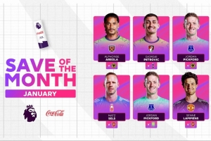 體育資訊2月5日訊 英超官方公布1月聯(lián)賽最佳撲救候選,拉門斯撲蘇維門迪頭球在列,皮克福德兩記撲救入圍。
