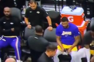 視頻中復盤的球迷破防:“雷迪克正想對全隊講話呢,勒布朗你人在哪?有人看到勒布朗了嗎?原來他在那兒像個受氣的小媳婦兒一樣撅嘴鬧情緒呢。(Pouting like a little b**ch)”