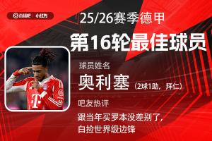 第16輪評選結(jié)果出爐,拜仁前鋒奧利塞2射1傳,助球隊8-1狂勝沃爾夫斯堡,奧利塞獲得超過25000名吧友的支持,當選【體育資訊X小紅書德甲第16輪最佳球員】!