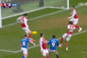 體育資訊02月07日訊 英超第25輪,阿森納vs桑德蘭。比賽第8分鐘,拉亞禁區(qū)內(nèi)脫手造成險(xiǎn)情,哈弗茨回防救空門(mén)!