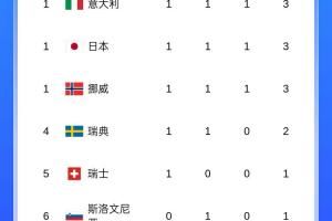 目前,意大利、日本和挪威均是1金1銀1銅,并列第一。