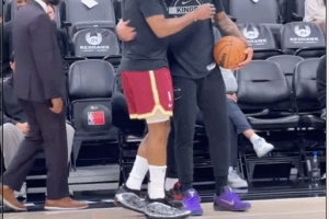 本場(chǎng)比賽是哈登的騎士生涯首秀,他賽前和2009屆的同級(jí)生德羅贊耳語(yǔ)寒暄。
