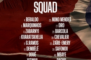 前鋒:7-克瓦拉茨赫利亞、9-貢薩洛·拉莫斯、10-登貝萊、14-杜埃、29-巴爾科拉、49-姆巴耶