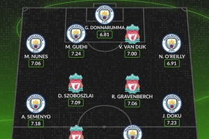 后衛(wèi):努內(nèi)斯(曼城)、格伊(曼城)、范戴克(利物浦)、奧賴利(曼城)