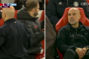 體育資訊02月09日訊 利物浦vs曼城,索博第74分鐘世界波,瓜帥坐在場邊人直接往后一癱,斯洛特則興奮慶祝。