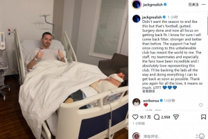 格拉利什社媒:我已經(jīng)完成手術(shù),將全力支持隊友并努力盡快回歸